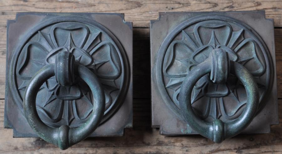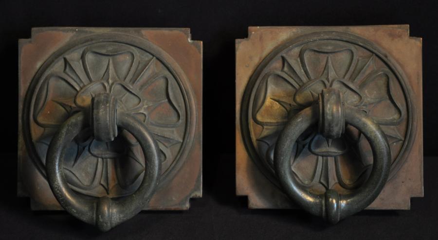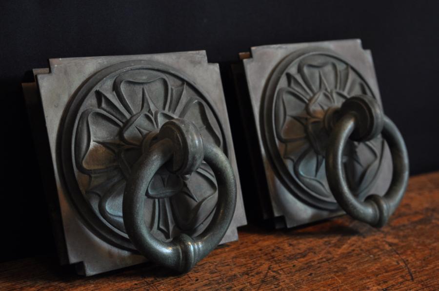 A very good pair of bronze art deco 1920s pulls / handles.English. Dimensions in inches/cms; Backplates are7.25/18.5 square